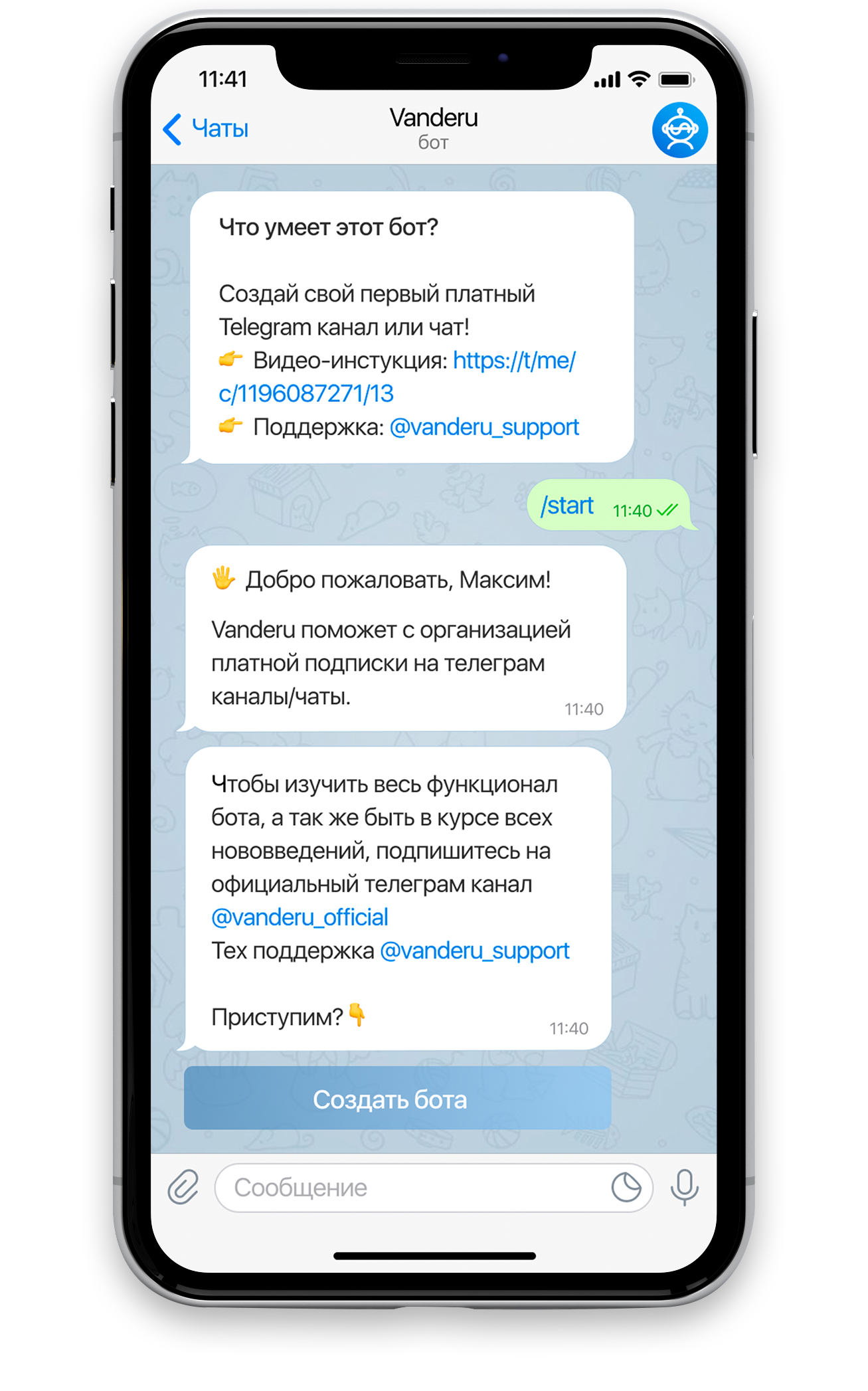 выбранного тарифа, клиенту отправляется ссылка на платный канал/чат. Как только
